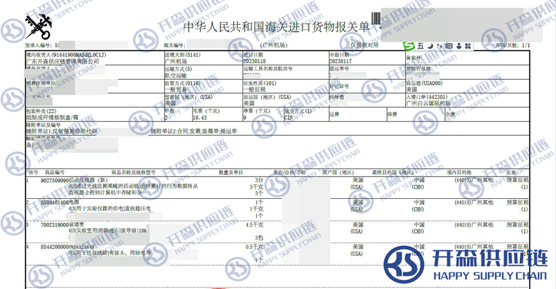 【导读】您正在阅读的是关于广州机场测量系统配件进口报关代理服务【清关案例】的内容,本文由九游娱乐app官方入口广州进口清关代理小编整理编写;