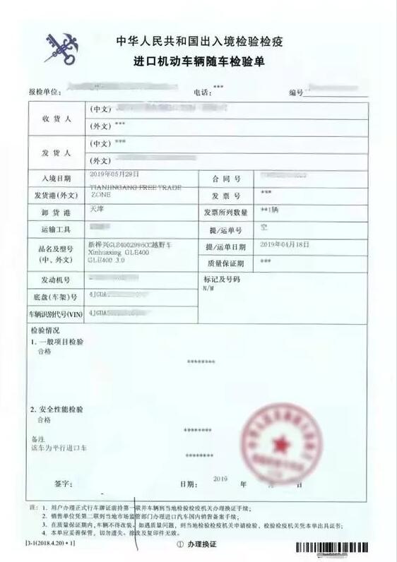 (2)进口机动车随车检验单