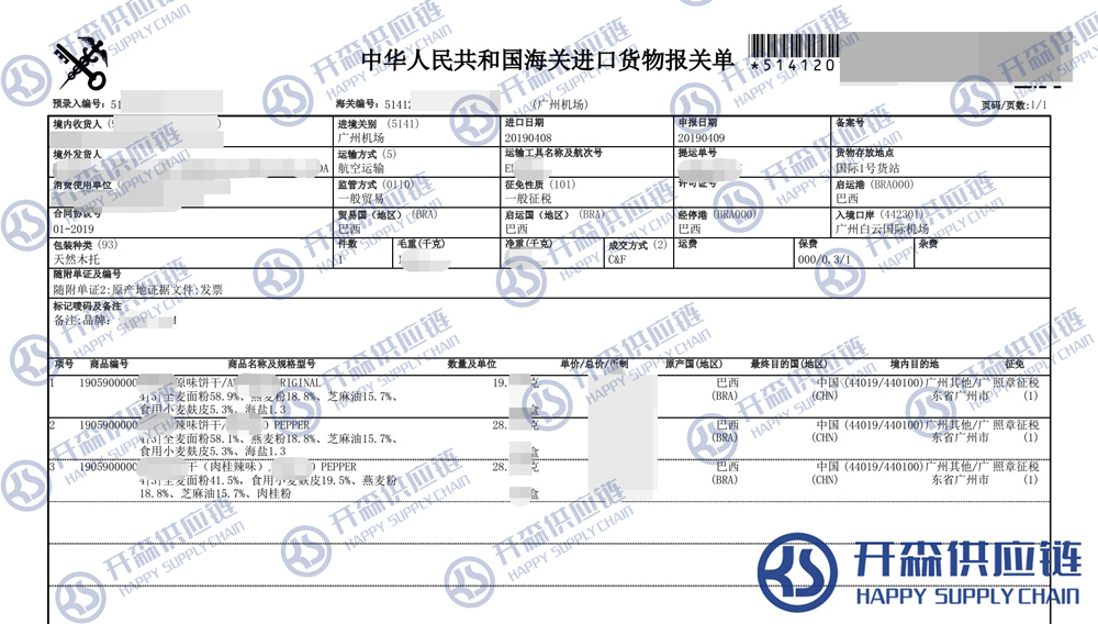 【导读】您正在阅读的是关于巴西饼干进口清关报关代理服务【经典案例】的内容,本文由九游娱乐app官方入口饼干进口报关代理小编整理编写;