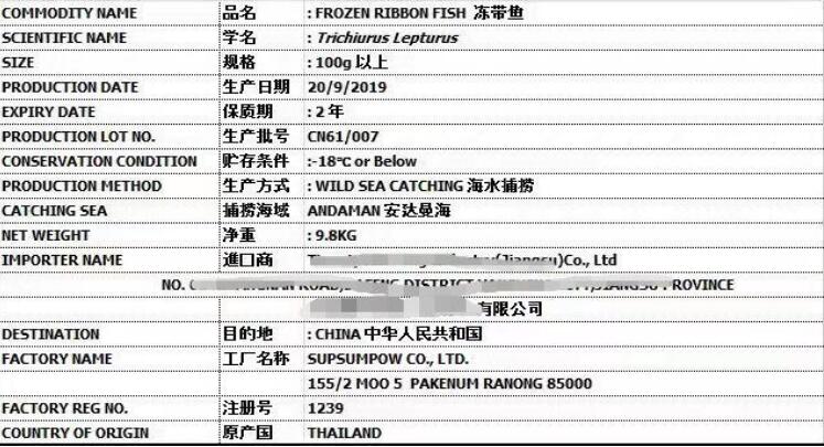 进口水产品标签有清晰易辨的中英文字样,标明以下内容:
