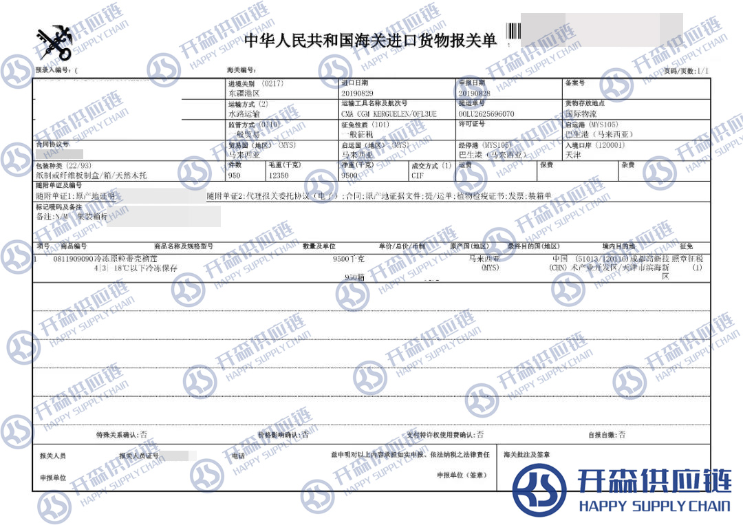 【本文结语】 上述就是天津港马来西亚冷冻榴莲进口报关代理服务【清关案例】的全部内容,希望能对您有所帮助,如有榴莲进口报关上任何疑问及问题可随时在线联系我们或拨打 18002611553,九游娱乐app官方入口供应链拥有丰富的榴莲进口报关操作经验及案例,10余年进口经验为您所用,各类进口疑难都能为您一一解答及协助快速处理解决!